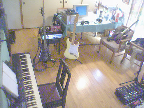 どうもごぶさたしております。ヴレインセカンドフルアルバム制作委員会統括レコ部長、みやの人です。え〜、進行状況ですが先日とうとうドラレコをおわらせました。結局延長13時間におよぶ激闘の末の勝利でした。砂漠で人間が生き延びるには一日4リットルの水が必要らしいですがドラレコも同様です。更にエネルギーが切れると物理的に体うごかなくなりますから炭水化物の摂取も必須です。コンビにおにぎり通算8個たべました。 最後にレコった曲が先日のMCでもちょっとしゃべったVRAIN史上最速のBPM201の曲だったんですがこれがまた練習不足(ぉぃ)もあいまって大苦戦、、、曲自体は完全にお遊び的ノリの曲なんですがレコは壮絶でした。まあいまどきツーバス200なんて別に珍しくもなくなってしまったので決して自慢できるようなシロモノではありませんがまあ、じぶんのレベルに敷居を下げてみてやれば今回のドラムは親不孝満載じゃないかと勝手におもっとります。毎度の自分的ノルマであるドラムはぜんぶ一発レコも無事達成。…って今の時代そんなのにこだわるなんてまったく無意味、とか言われそうですがまあ地味にポリシーなんでほっといてください。いまどきの機械みたいなドラムが好きなひとにはおすすめ出来ませんがヴレインが好きなひとにはおすすめできます(^^; と、今回紹介の1曲はその曲と同日にドラレコった「Moonlight Rendezvous」という曲でも。 http://miya38.studio-web.net/mp3/Moonlight_meiko.mp3 月明かりのランデヴー、ということでひとことで表すならロマンシング・ハイスパート・ブギー、とでも。元々じぶん的にはポップス〜ジャズ系の洒落た響きも大好物ですが今作中それがもっとも顕著に出ているんじゃないかとおもわれる曲です。…コンポーザー的には「テンションノートを使ってる=あたまいいだろコラ」をひそかにアピールしようというまるで小学生のようなせこい邪念も含まれております(爆)。リズムパターンは何気に「ツーバス中抜き3連符の真ん中にスネア&タムでゴーストノートを入れる」という手の左右の違いはありますが菅沼孝三氏の教則ビデオからそのままパクったものとなってます。ビデオ「足数王」ではBPM260というヤケクソにしか見えない速さでそれをくり出してましたが及ばずながらコチラは236で。…それでもけっこ〜大変でした、ってまあ、そんなドラムの細かい部分なんてどうでもいいのでこの軽やかな響きの完成版をぜひおたのしみにどうぞ、と。よく「メタルファンだけじゃなくて幅広いリスナーにアピールできるんじゃないかとおもいます」みたいなコメントって見かけるけどまさにそれではないかと勝手におもっております。 画像はサウンドスペースハイランド、俗に言うみやスタの模様です。ドラム以外はココで全部レコってるんですよ。あ、最近新しいマイクプリを導入しました。GRACE DESIGN MODEL101ってやつです。前から欲しかったんですよ。ソレでメインVoは全部レコり直してます。ちなみに歌レコは1曲早けりゃ30分、かかって1時間半程度なので全体の進行の遅れには別に繋がりませんのでご安心を、って7/7発売予定とかMCで軽く言ったらそれが正式発表みたくなってしまってますが(汗)正式な発売日はまだ未定ですのでなにとぞご了承下さいませ〜 <(_ _)> そんなあんばいでまた次回! (2007.5.29[Tue])